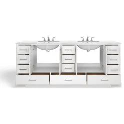 - Includes base cabinet, countertop, and sinks