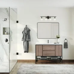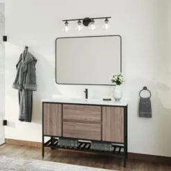 - Leveling feet help keep your bathroom vanity stable, even if the floor is uneven