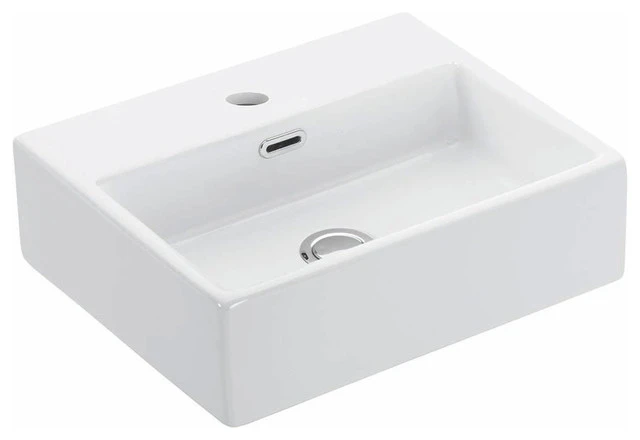 Quattro 40.01, Bathroom Sink (Washbasin), 16.9″ L x 14.4″ W x 5.5″ H, Wall Mounted / Countertop (Vessel), with Faucet Hole, in Ceramic White