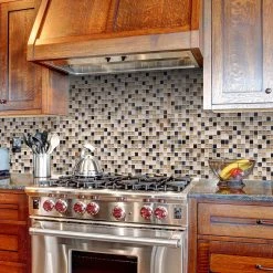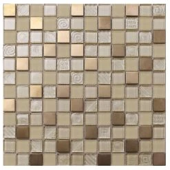 Adding a touch of glamor to your home has never been easier with this gorgeous gold and copper glass metal backsplash tile. Perfectly polished glass inserts are interspersed with pieces featuring unique swirls and textures. The glittering metal contributes just the right hint of contemporary style for a kitchen that”s certain to wow your guests instantly.
