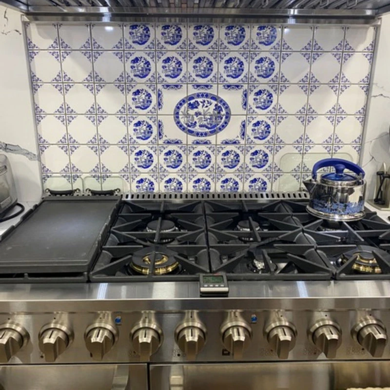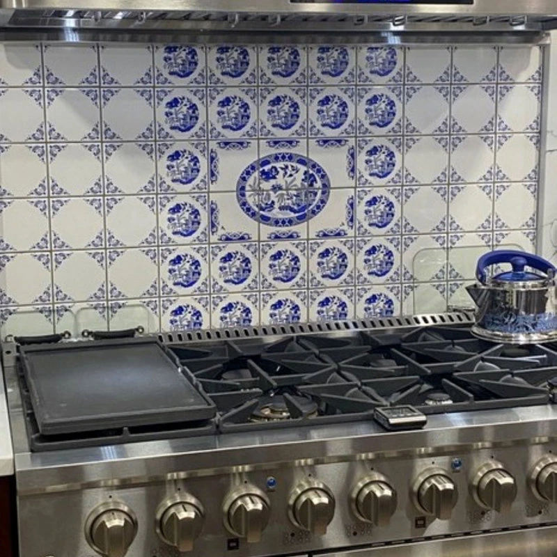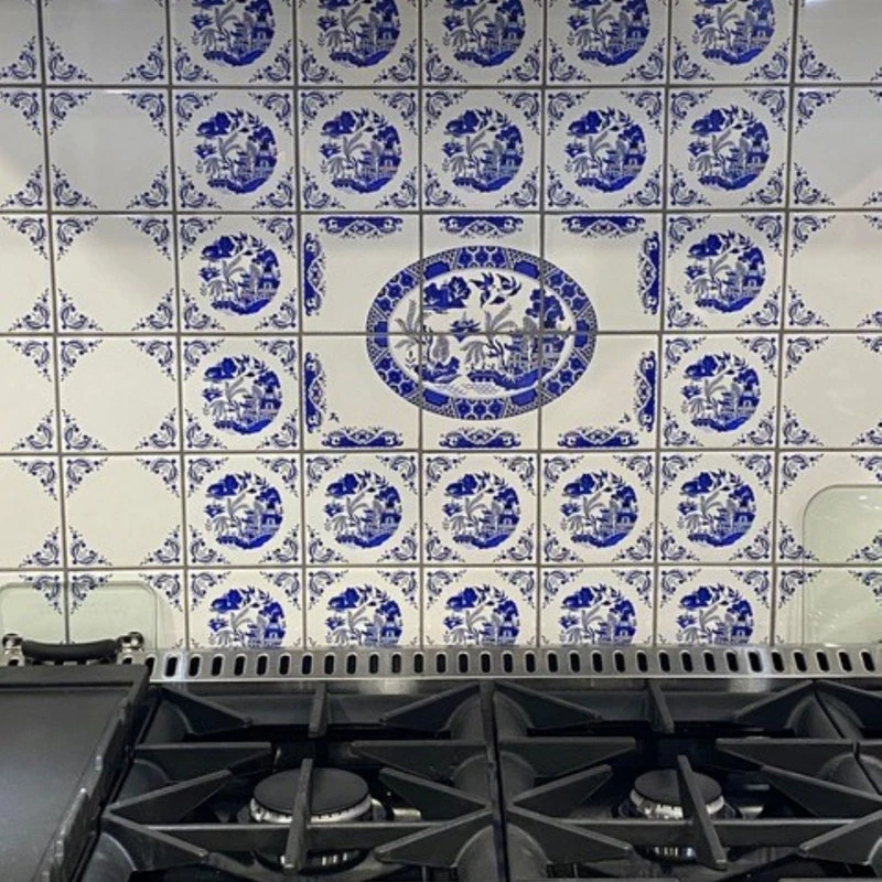 All of our tiles and murals are kiln fired in temperatures exceeding 1400 degrees F and are made here at Mottles Murals in Youngstown, Ohio U.S.A. The standard grade wall and counter top tiles that the murals are kiln-fired onto are purchased at Home Depot or Lowes so you can easily match your tiles with no difference in size or depth of the individual tiles. The mural patterns are melted down onto the glaze of each tile during the firing process and the picture will not fade or wear off with age. This is not an ink press process this is a kiln firing process using china decals that are created with a silk screen process.