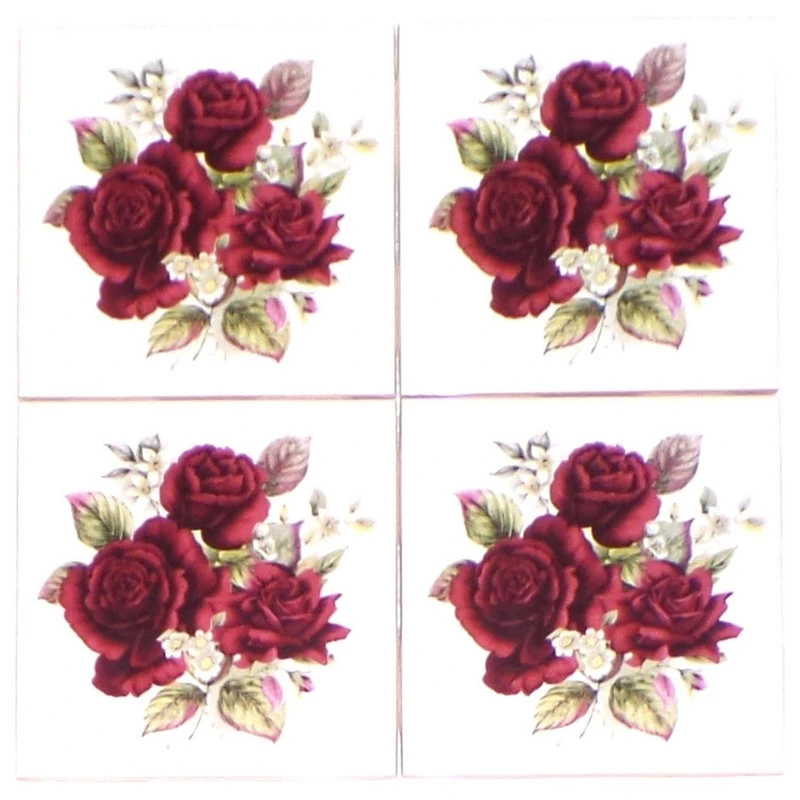 - Set of four individual 4.25″ x 4.25″ white gloss standard grade ceramic wall tiles.