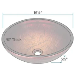 The 618 red lava glass vessel sink is manufactured using fully tempered glass. This allows for higher temperatures to come in contact with your sink without any damage. Glass is more sanitary than other materials because it is non-porous, will not absorb stains or odors and is easy to clean. This classic bowl-shaped vessel has vibrant red and yellow paint dancing around an embossed pattern throughout the sink. A matching glass waterfall faucet is available to correspond with this sink. The overall dimensions for the 618 are 16-1/2 in. x 16-1/2 in. x 5-1/2 in. and an 18-inch minimum cabinet size is required. As always, our glass sinks are covered under a limited lifetime warranty for as long as you own the sink. Accessories not included.