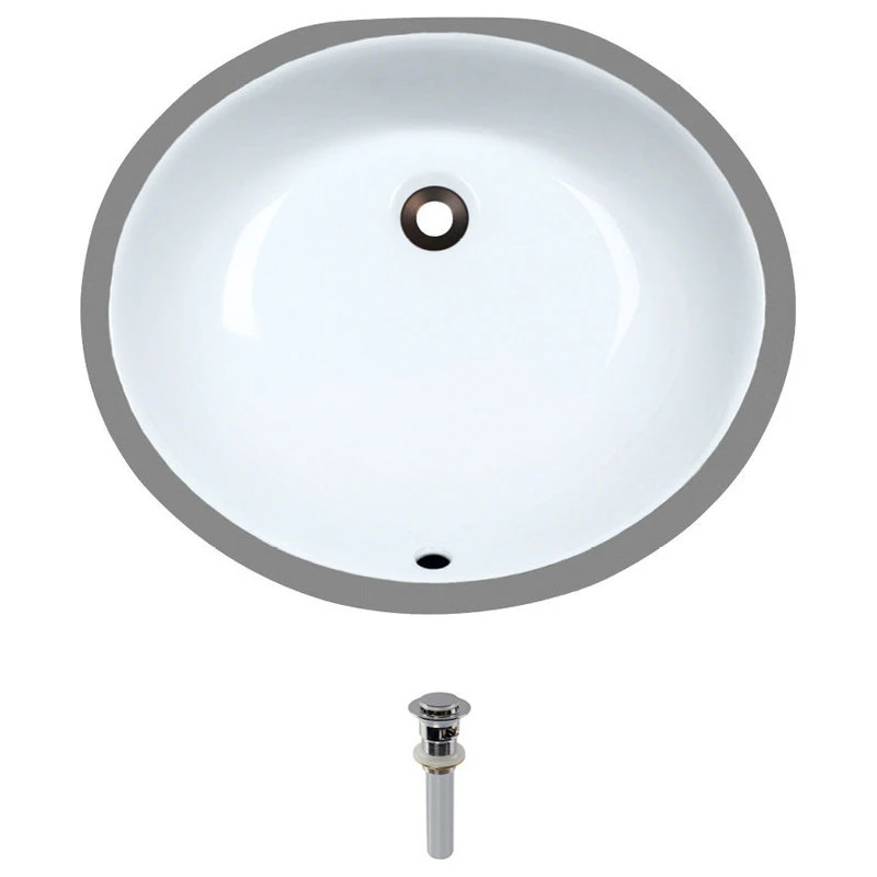 For the sleek styling and durability of porcelain in the bath, look no further than the MR Direct UPM-White. This is a comfortable, oval-shaped undermount basin, whose highly polished surface reflects your good taste. The side curves of the bowl level out at its bottom, and an overflow is built-in for safe use when filling with water. The warm white coloring gives the UPM-White a soft, inviting appearance. Solid porcelain sinks are available in two grades. One is simply termed porcelain, while the other is vitreous china. Vitreous china is technically the special coating, an enamel, which is added to the standard porcelain late in the baking process. On its own, porcelain is both beautiful and durable, but the additional vitreous china coating creates an even more impervious and sanitary surface. MR Direct is proud that its UPM-White model is made of true vitreous china. With an overall measurement of UPM-White, it will require a minimum-width cabinet of 21″. Additionally, a spring-loaded, pop-up drain (pud) is included, which opens and closes with a simple press to its attractive chrome cap.