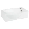 The V110-White porcelain vessel sink offers a unique, modern look for any bathroom. It is made from true vitreous china, which is triple glazed and triple fired to ensure your sink is durable and strong. Because this sink is a vessel, no mounting hardware is needed. The overall dimensions for the V110-White are 21 7/8″ x 19 1/4″ x 6 1/8″ and a 21″ minimum cabinet size is required. Vessel sinks require a special spring-loaded pop-up drain, which we offer in a variety of finishes to fit your decor. As always, our porcelain sinks are covered under a limited lifetime warranty for as long as you own the sink.
