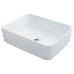 Simple and unassuming, this rectangular vessel sink is full of practicality. Its thin sides subtly angle up and out from its level bottom. And, surrounded by gently curved corners, a spacious interior with plenty of length, width, and depth is provided. The additional vitreous china coating on this model creates an even more impervious and sanitary surface than standard porcelain. With an overall measurement of 18 1/8″ x 14 1/8″ x 5 7/8″, it will require a minimum-width cabinet of 21″.