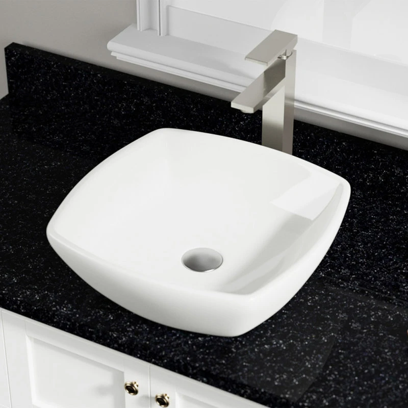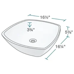 This almost-square vessel features sides which bow slightly outward and curve gracefully upward from its level base. With a low profile, it rests on the bathroom vanity making a simple but elegant artistic statement. Choose the V1802-Bisque when a soft and simple artistic statement needs to be made. The additional vitreous china coating on this model creates an even more impervious and sanitary surface than standard porcelain. With an overall measurement of 16 1/2″ x 16 1/4″ x 5 3/8″, it will require a minimum-width cabinet of 18″. This listing does not include any accessories.