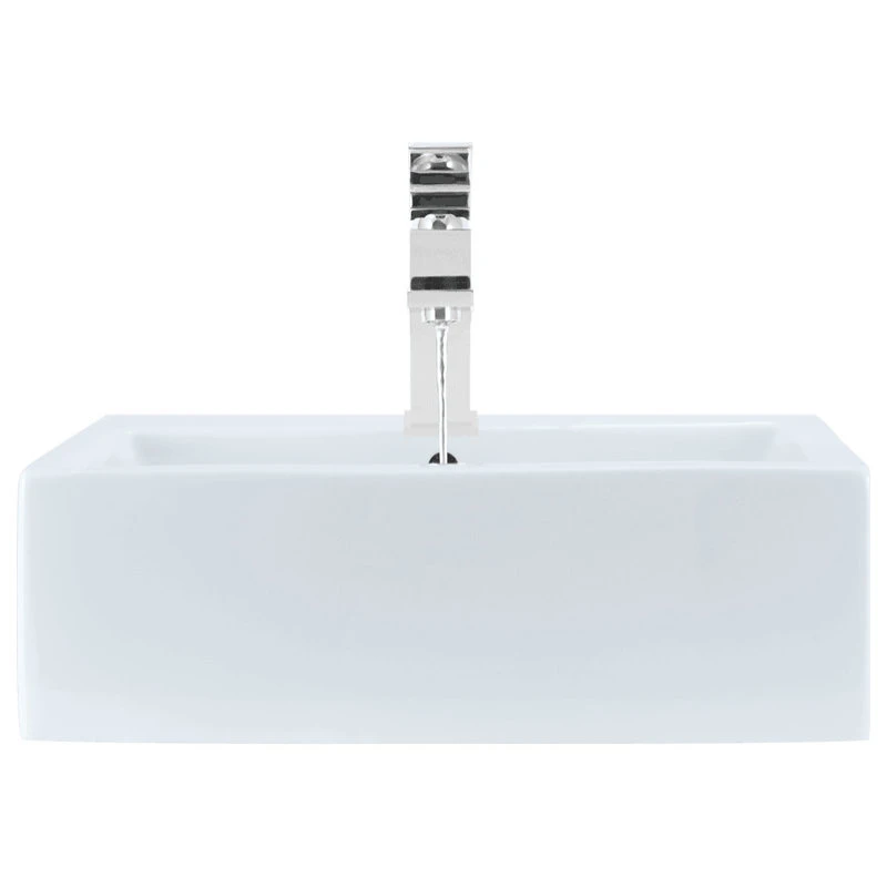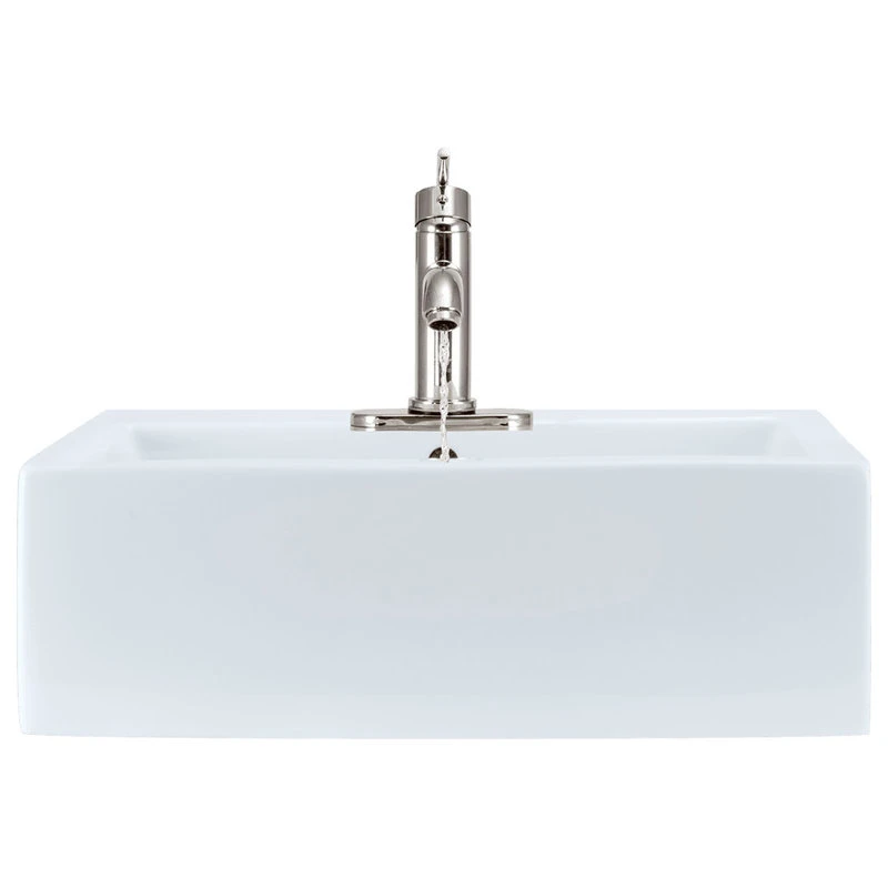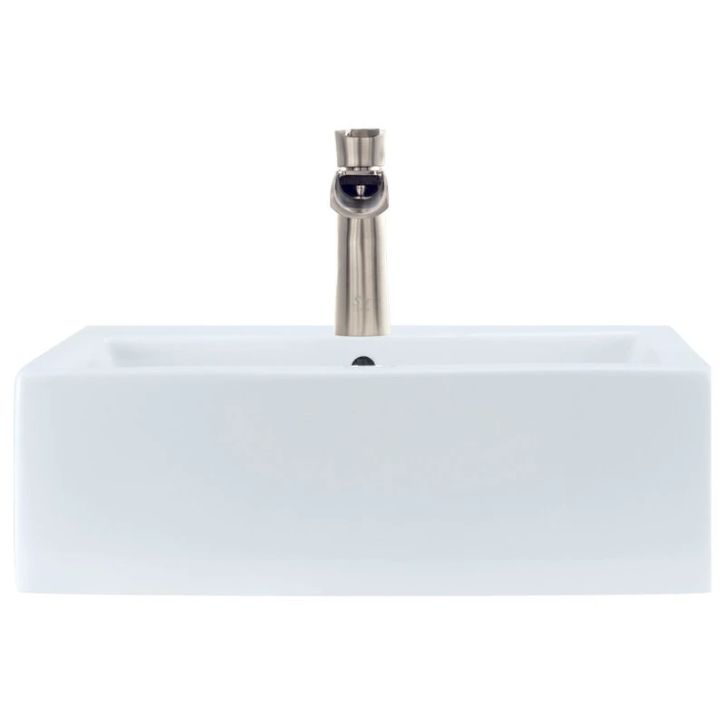 The V2502-White porcelain vessel sink offers a unique, modern look for any bathroom. It is made from true vitreous china, which is triple glazed and triple fired to ensure your sink is durable and strong. Because this sink is a vessel, no mounting hardware is needed. The overall dimensions for the V2502-White are 21″ x 16 1/4″ x 5 3/4″ and a 21″ minimum cabinet size is required. Vessel sinks require a special spring-loaded pop-up drain, which we offer in a variety of finishes to fit your decor. As always, our porcelain sinks are covered under a limited lifetime warranty for as long as you own the sink.