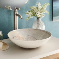 Crafted in Italy of hand spun Murano Glass, the Verona vessel sink offers a clean, contemporary style and easy maintenance. The smooth, nonporous surface of the sink prevents staining and its glass has been certified to resist cracking after exposure to both impact and temperature change. Its symmetrical round bowl showcases organic texture that’s as durable as it is beautiful. Using approximately half the energy required to create a porcelain sink, the Verona brings sustainable luxury to your space.