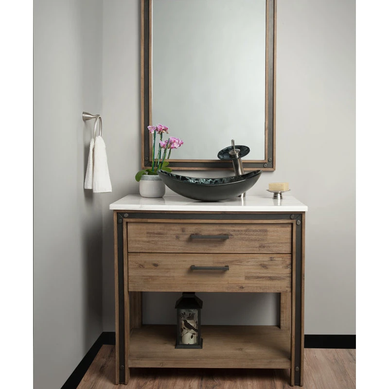 - Includes: glass vessel sink, vessel faucet, pop-up drain, mounting ring