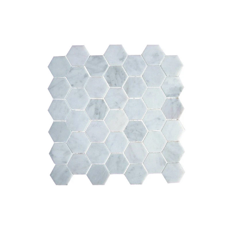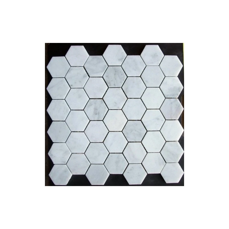 - Premium Grade Bianco Carrara White 2″ honed marble mosaic on 1 sq. ft. sturdy mesh sheet-