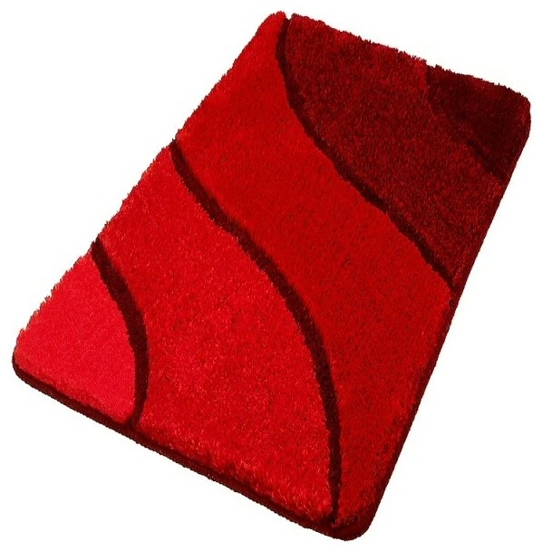 Luxury large red bath rug. This sculpted red bathroom rug has a multi-level pile that is plush and stylish. Durable .91in pile height that is warm, easy to care for and has a non-slip / non-skid backing. Perfect for any bathroom. Machine wash in warm water and fluff dry in a dryer. Made in Germany