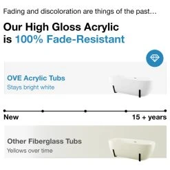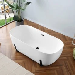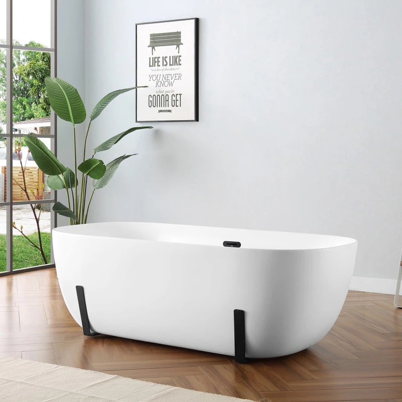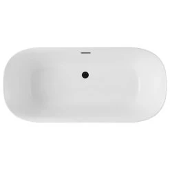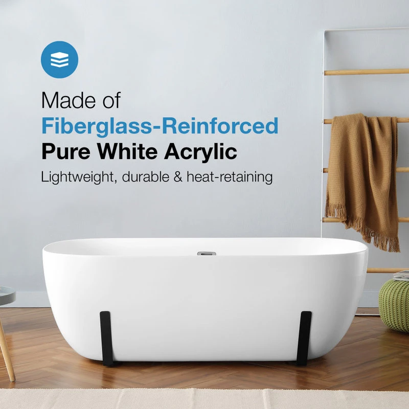An elegant, minimalist design, the Sayuri bathtub from OVE Decors takes a symmetrical, sleek white tub silhouette and complements it with contrasting black hardware and bath legs cradling the freestanding construction. Its double backrest and 13-in soaking rest make this tub the most relaxing spot in the house, while the fibreglass-reinforced, pure white acrylic construction is durable and heat-retaining, and will stay bright white for well over 15 years. Beautifully sized, lightweight and delivered with pop-up and overflow drains already pre-installed, the Sayuri tub is easy to immediately assemble.