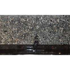 Beach pebbles, naturally tumbled by the sea, are used to create our Natural Pebble Tile line. Each stone for these mosaic pebble tiles are hand selected and adhered to a mesh backing for easy installation. Our unique interlocking system gives the appearance that each stone is hand set.