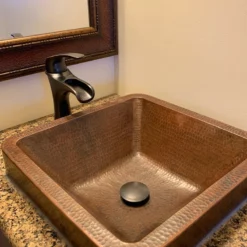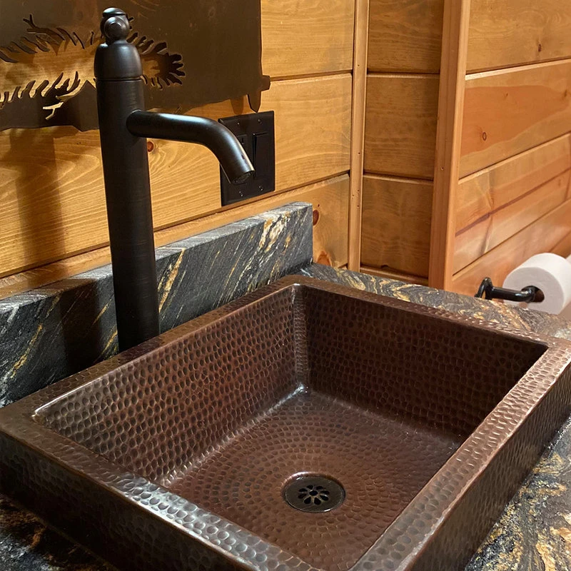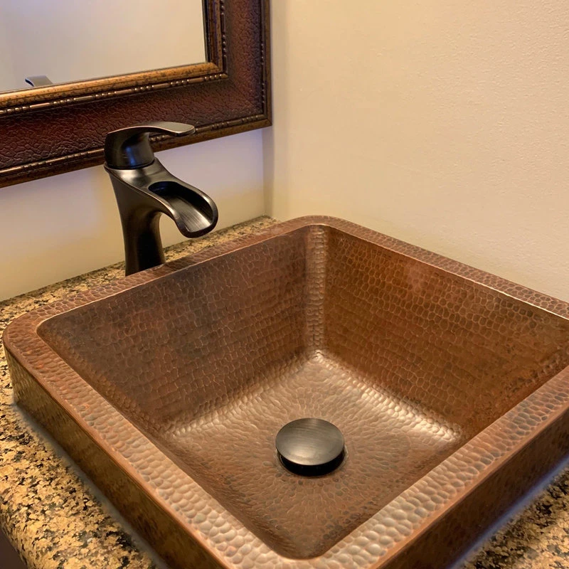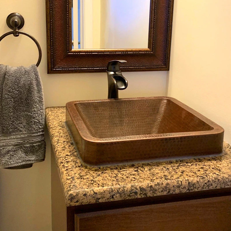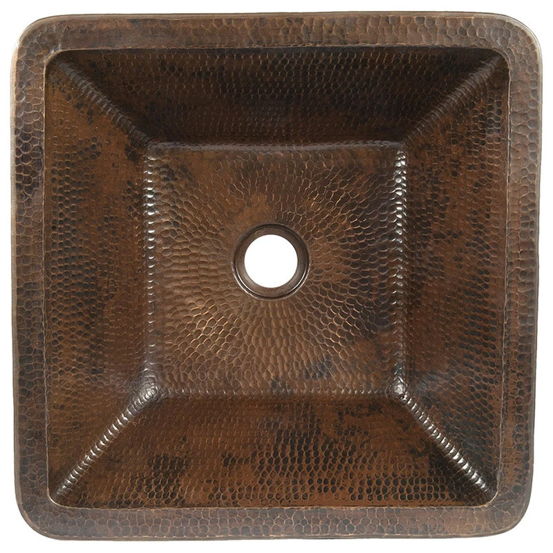 15″ Square Skirted Vessel Hammered Copper Sink Features: