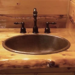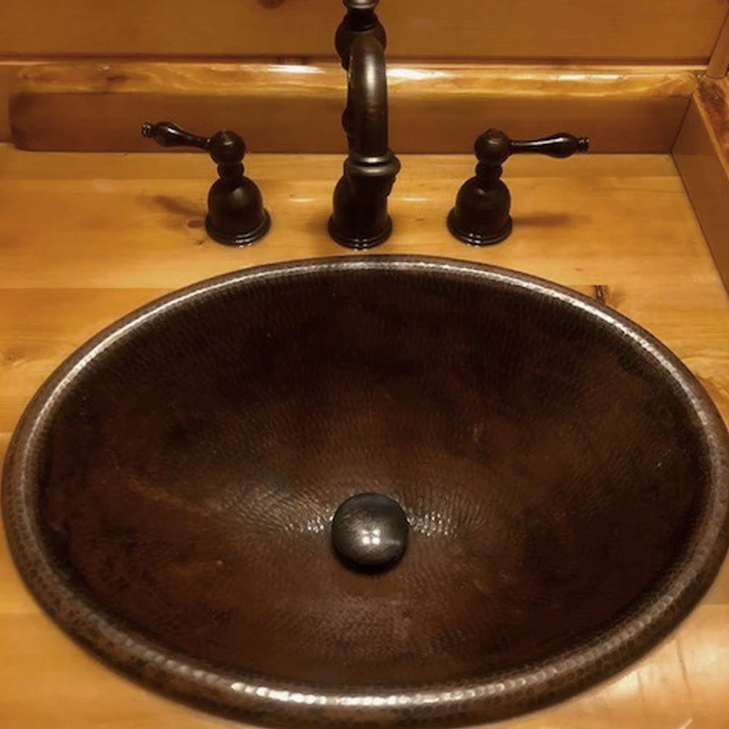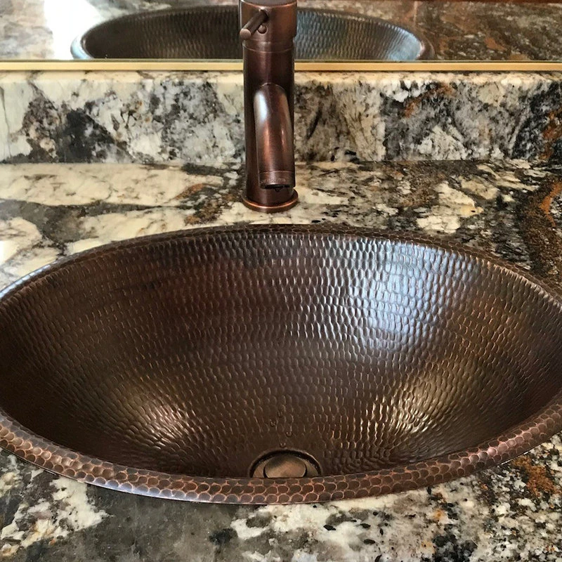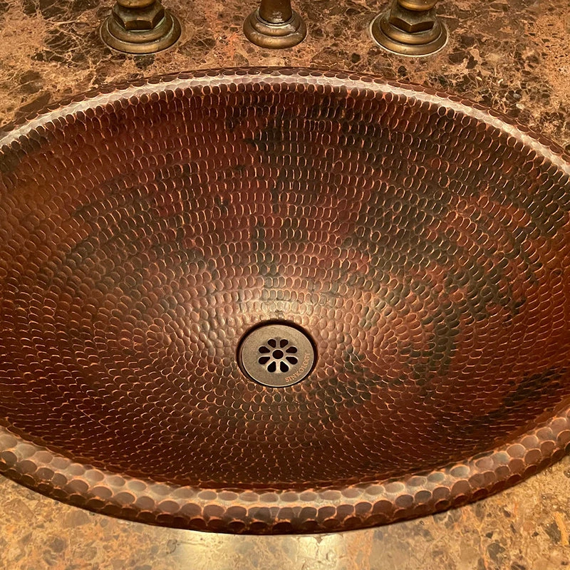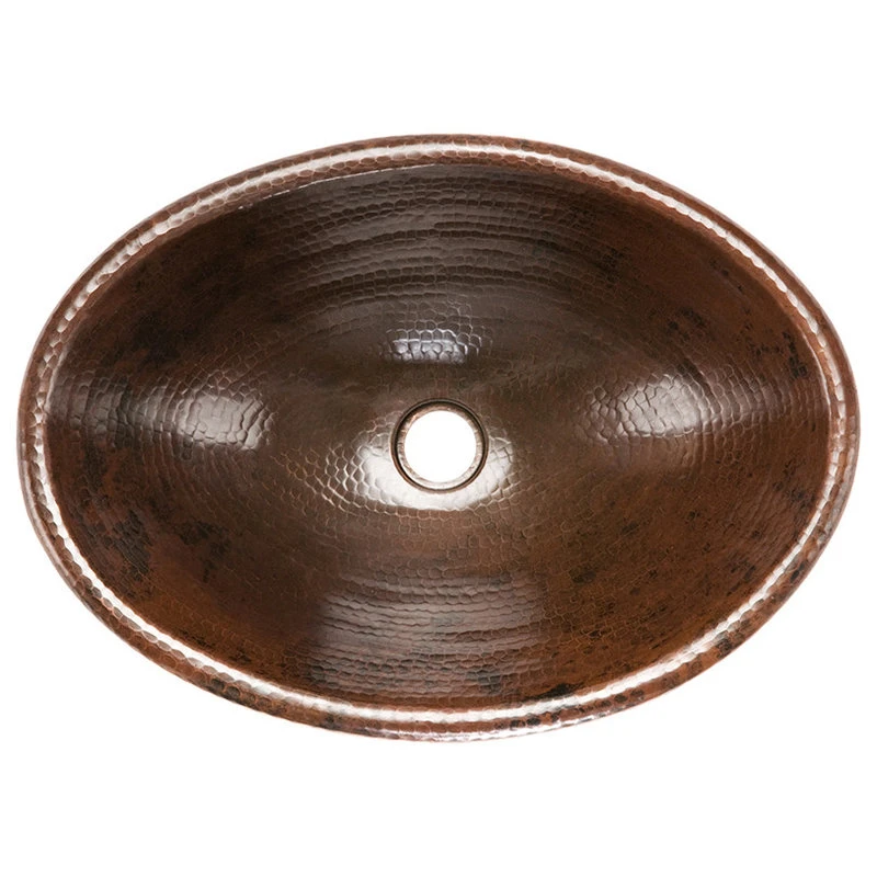 19″ Oval Self Rimming Hammered Copper Sink Features: