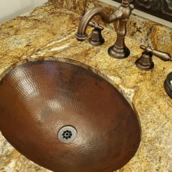 19″ Oval Under Counter Hammered Copper Bathroom Sink Features: