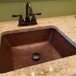19″ Rectangle Under Counter Hammered Copper Bathroom Sink Features: