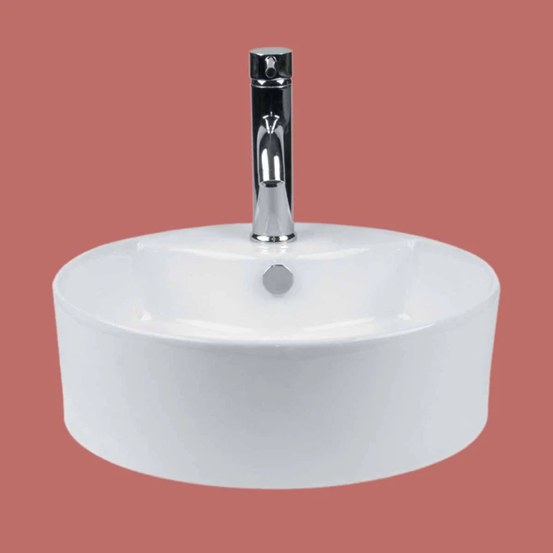 Item 13489 Vessel Sinks Above Counter: Made of Porcelain these sinks easily endure daily wear and tear. Our protective RENO-GLOSS finish resists common household stains and makes it an EASY CLEAN wipe-off surface. Ergonomic and elegant easy reach design reduces daily strain placed on your body. SPACE-SAVING design maximizes limited bathroom space. Easy, above counter installation let’s you select from many faucet styles and countertop designs, sold separately. Measures 18 1/2 in. dia.
