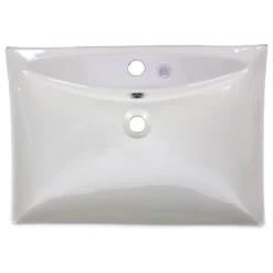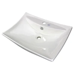 Item 13742 The Shanta vessel sink from Renovator’s Supply features durable ceramic construction and a unique curved rectangle design.