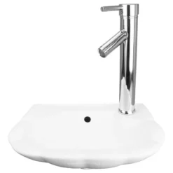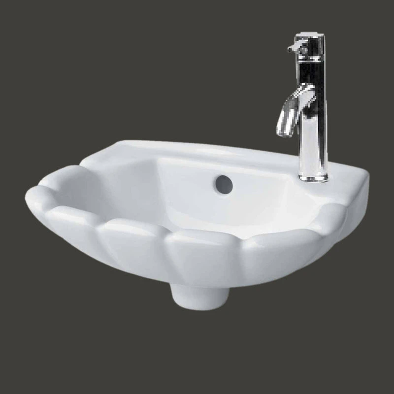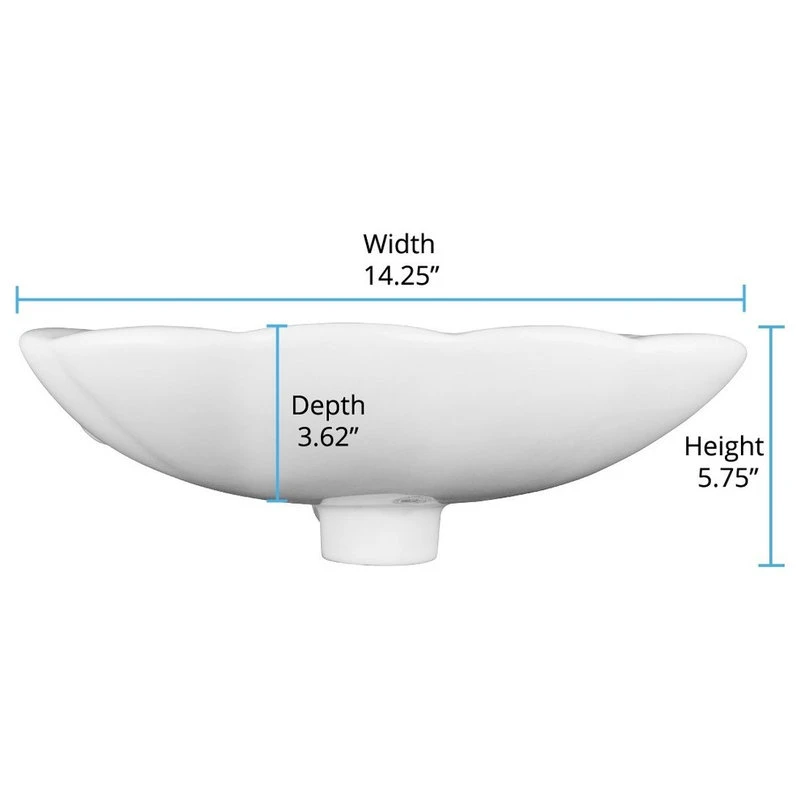 Add a touch of elegance to your bathroom with our modern and stylish mini white ceramic periwinkle flower shaped floating wall mount vessel sink. Its sleek design fits perfectly with any bathroom decor. This easy clean, smooth surface bathroom sink is manufactured of heavy-duty Grade A Vitreous China ceramic material.