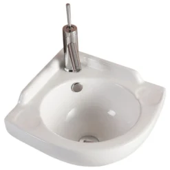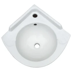 This is an ASME compliant 20.5 inches wide bathroom corner sink designed to enlighten your bathroom and fit in small corner spaces serving the purpose just right. Heavy-duty ceramic built, porcelain-coated scratch-resistant glazed design and wall mount installation – this floating bathroom sink is all set to fit right in with your home.