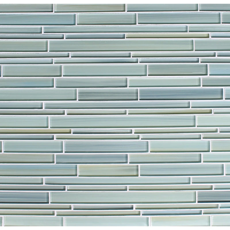 Introducing our new Reflections linear glass mosaic tiles. A hand painted mix of soft greens, blues, ocher, and a touch of black. Each sheet is 12″ x 12″ and includes a complex mix of random rectangular glass pieces. Reflections is also available in a small subway mosaic. A great choice for a kitchen backsplash or accent wall in a bathroom. These tiles repeat every 6 inches making for a great accent strip for a shower or tub surround.