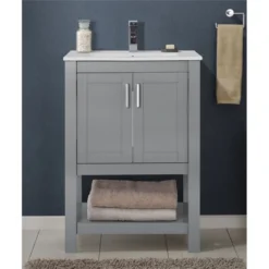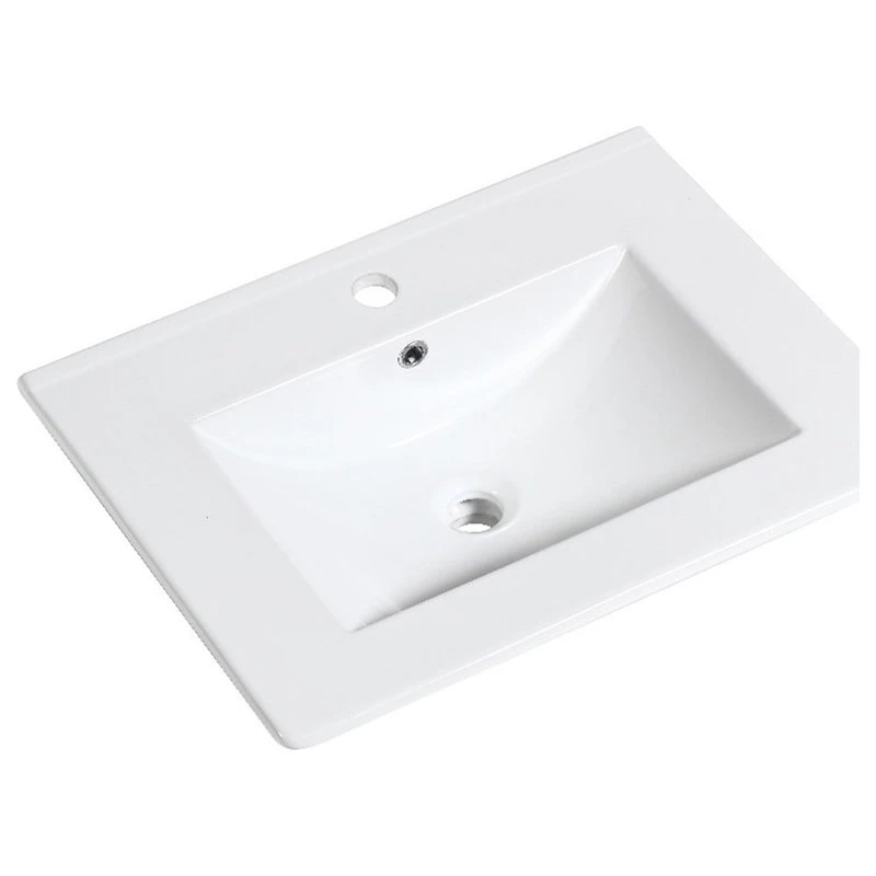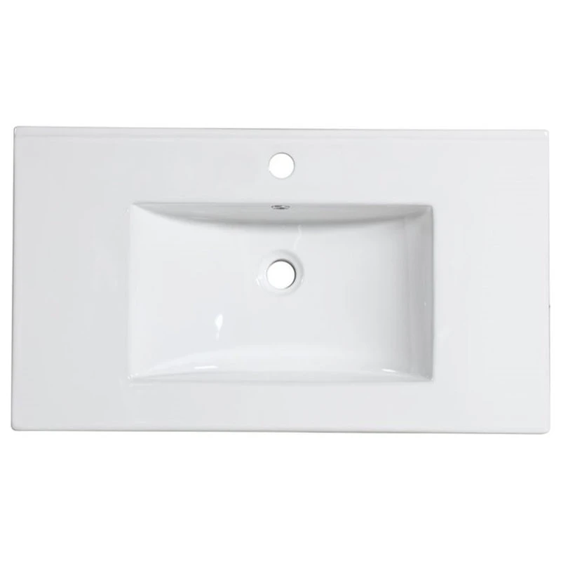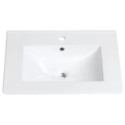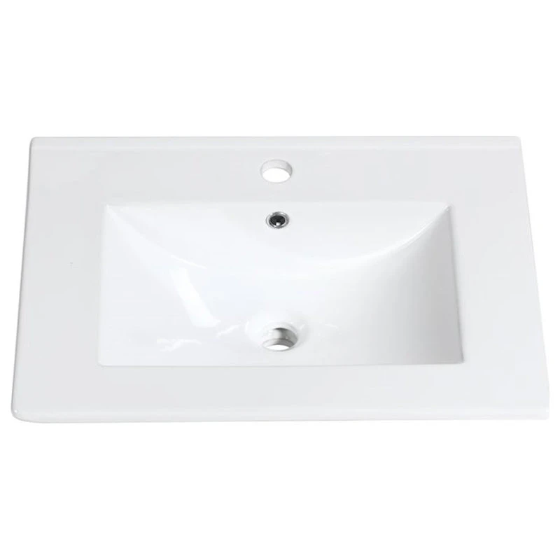 Update the look and feel of any bathroom with this contemporary single sink vanity top. Featuring crisp white finish, ceramic construction, the vanity and sink offer a neutral look with clean lines to complement virtually any home. The vanity boasts a rectangular profile with squared corners and is offered in two sizes to accommodate a wide range of spaces. Simple and elegant, this one-hole, single sink vanity is a perfect choice for your new bathroom.