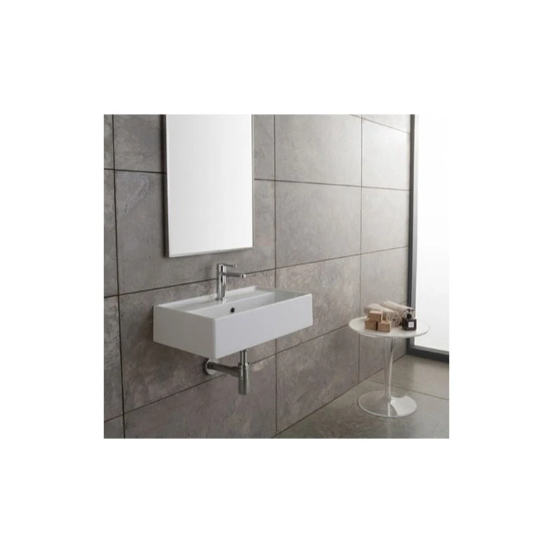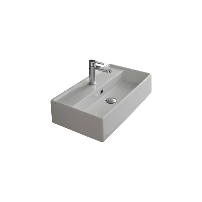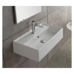 This beautiful rectangular ceramic sink comes as either a bathroom vessel sink or wall mounted model with included overflow and mounting hardware. This contemporary style sink can be configured for single, three, or zero holes. With dimensions of 23.62″x13.39″x5.51″, this model will fit perfectly into your bathroom.