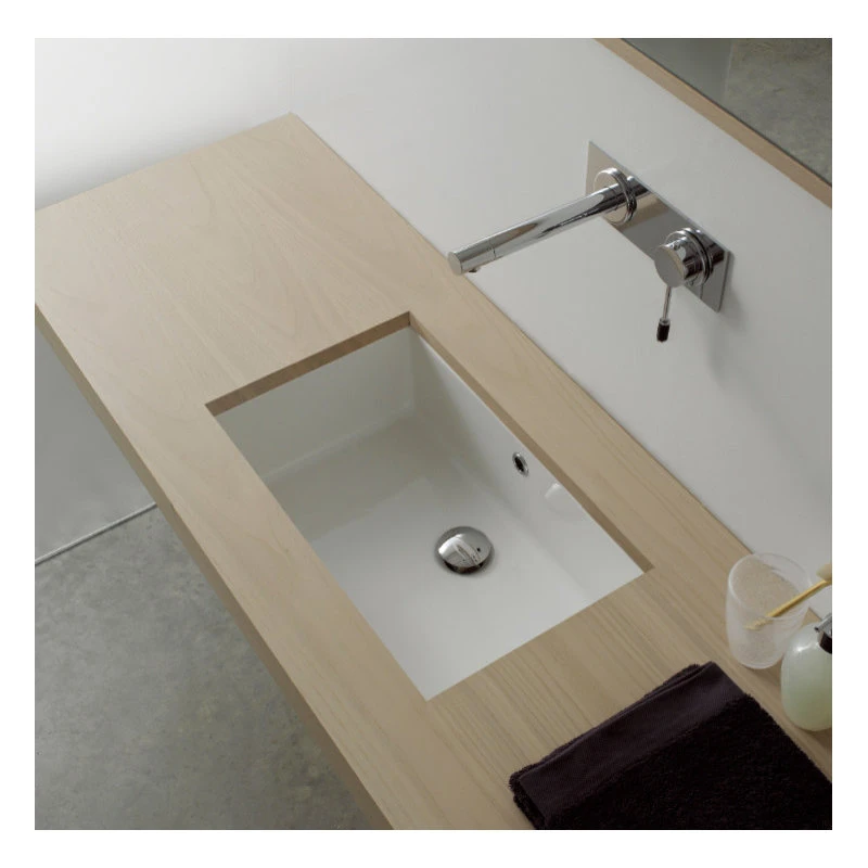 From the Scarabeo Miky collection, this rectangular sink has a deep basin with built-in overflow protection. The undermount design provides for easy upkeep and cleaning due to the vanity or countertop positioned just above the edge of the sink basin. Undermount sinks make for greater bathroom or powder room cohesion with their surrounds.↵