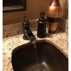 SimplyCopper 15” Square design, created of 18-gauge copper which is hand-hammered to provide a rustic antiqued look. This copper sink can be used as either a drop in or an under mount.