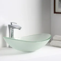 The ANZZI Craft Series sink is a traditionally crafted oval vessel sink adorned in a Lustrous Frosted Finish. Each ANZZI vessel sink is formed using RHINO ALLOY certified high tempered Deco-Glass material. The result is a perfectly shaped dynamically captivating vessel centerpiece for any bathroom counter.