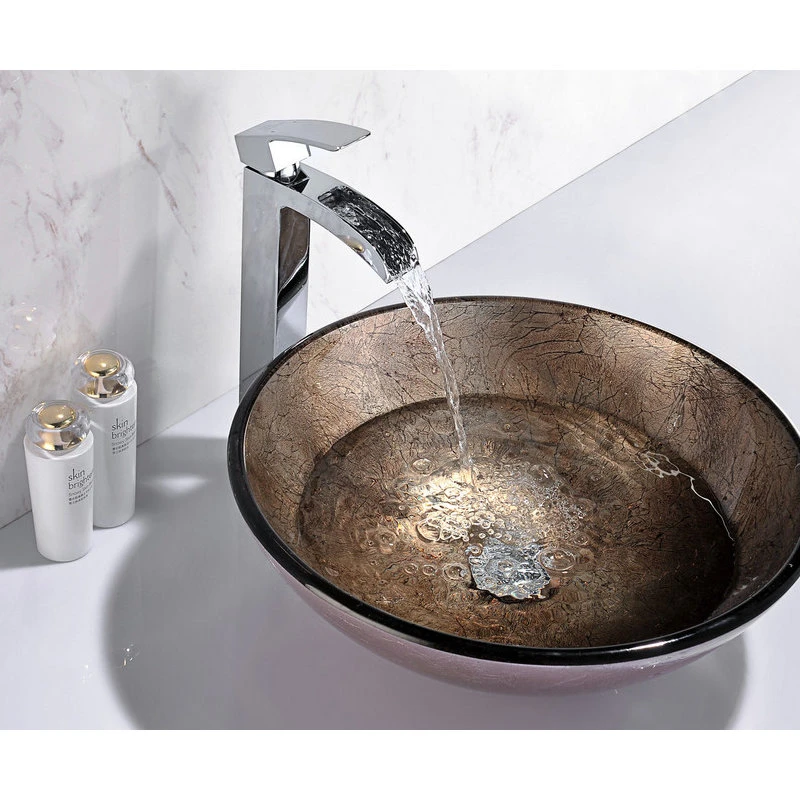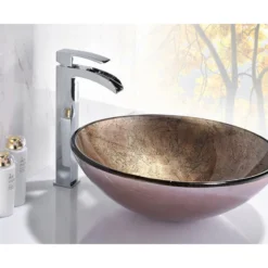 The ANZZI Tara Series sink is a traditionally crafted round vessel sink adorned in a Platinum Storm finish. Each ANZZI vessel sink is formed using RHINO ALLOY certified high tempered Deco-Glass material. The result is an elegantly shaped and captivating vessel centerpiece for any bathroom counter.