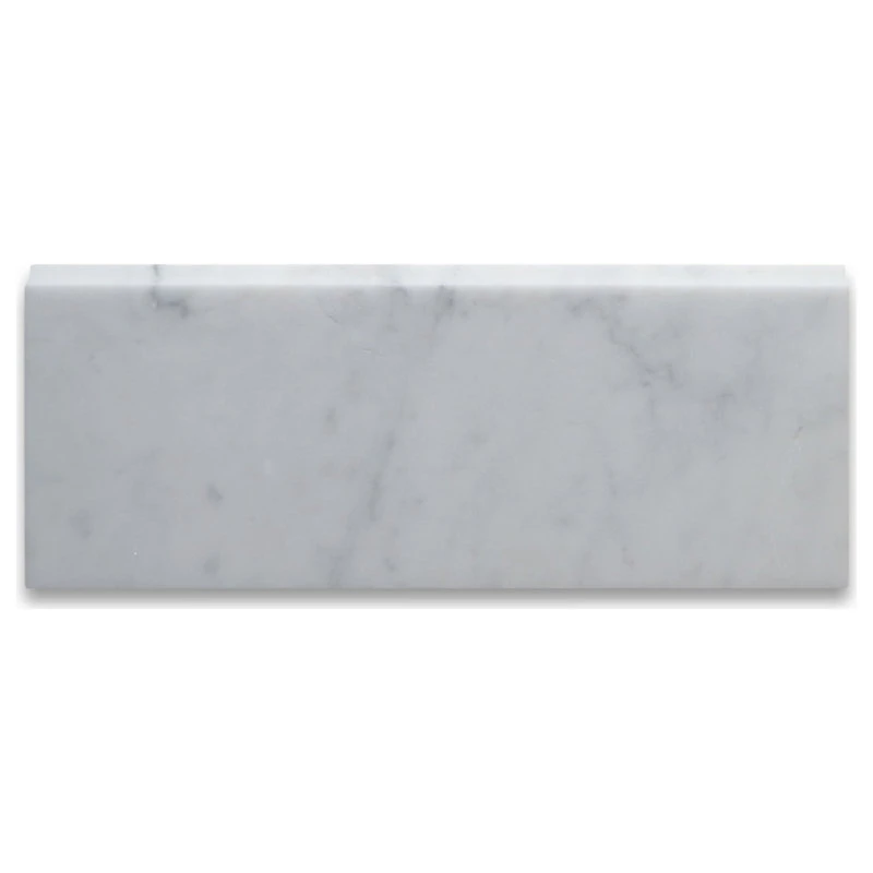 - Carrara White Marble baseboard molding 5″ width x 12″ length x 3/4″ thickness; Honed finish