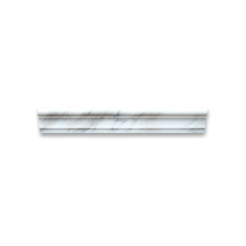 - Calacatta Gold Marble chairrail molding 2″ width x 12″ length x 1″ thickness; Polished finish