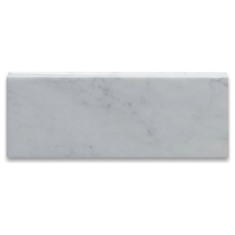 - Carrara White Marble baseboard molding 5″ width x 12″ length x 3/4″ thickness; Polished finish