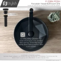 - STANDARD DRAIN FIT: Vessel can fit up to 1-3/4 inches standard drain opening. Works with lever or pop-up drains without overflow. Drain is not included