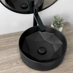 This sink has a thick and radiant white glaze surface. The lovely distinctive circular shape with geometric design and slim edge will make any bathroom look stunning. The smooth sink surface drains water easily keeping your sink dry and clean. This vessel sink should not be missing from your bathroom counter.