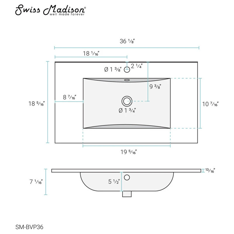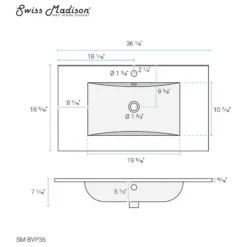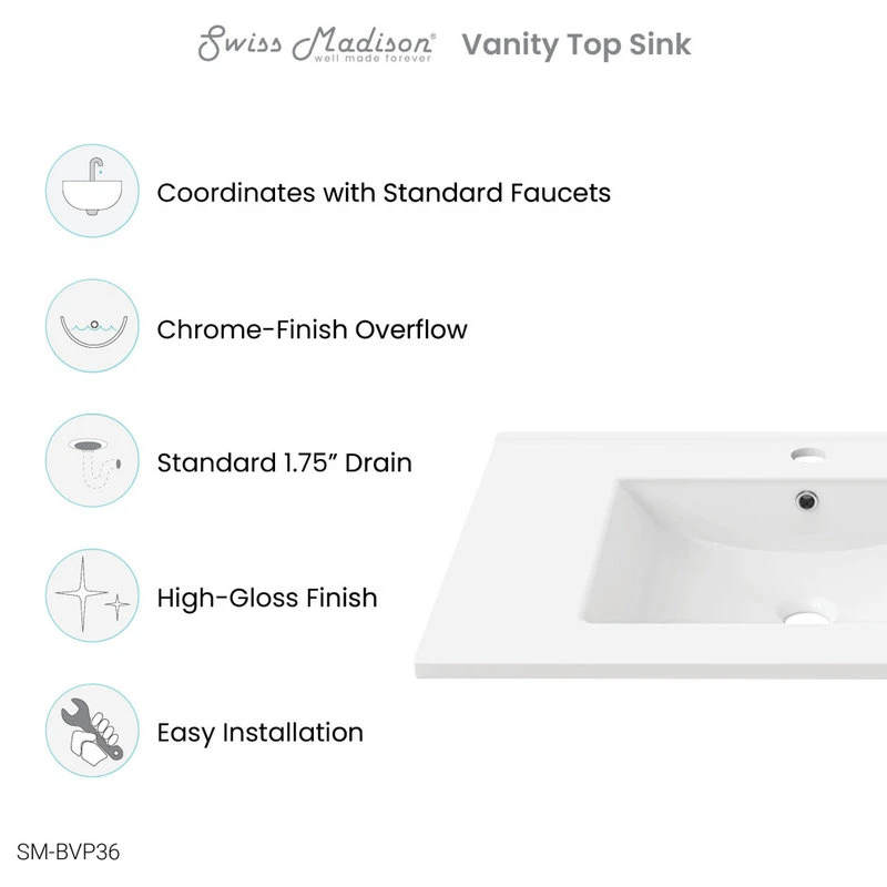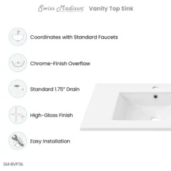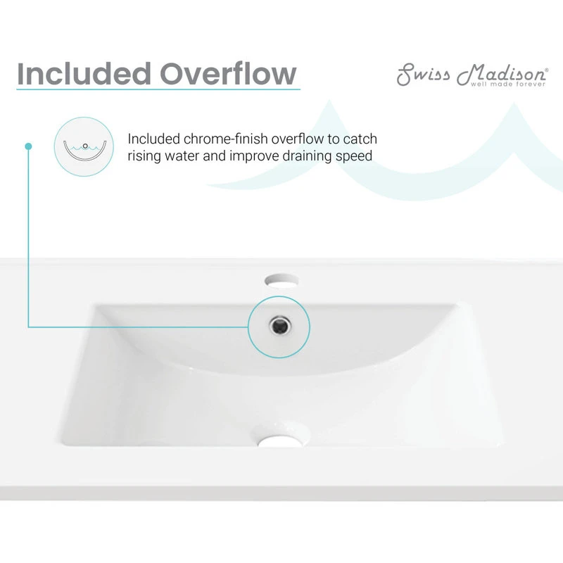 The Swiss Madison Ceramic Vanity Top Sink is ideal for any bathroom configuration. The combined integrated vanity top and sink offers a practical style.