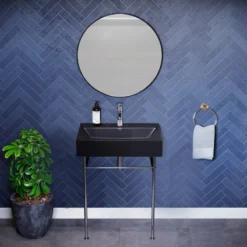 The Claire console sink ushers in your guests with a powerful and bright character. The widened washbasin offers increased ease of access. An open design makes the room appear more spacious and candid.