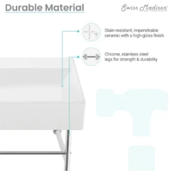 - Glossy porcelain finish makes the sink easy to clean and elegant to the eye