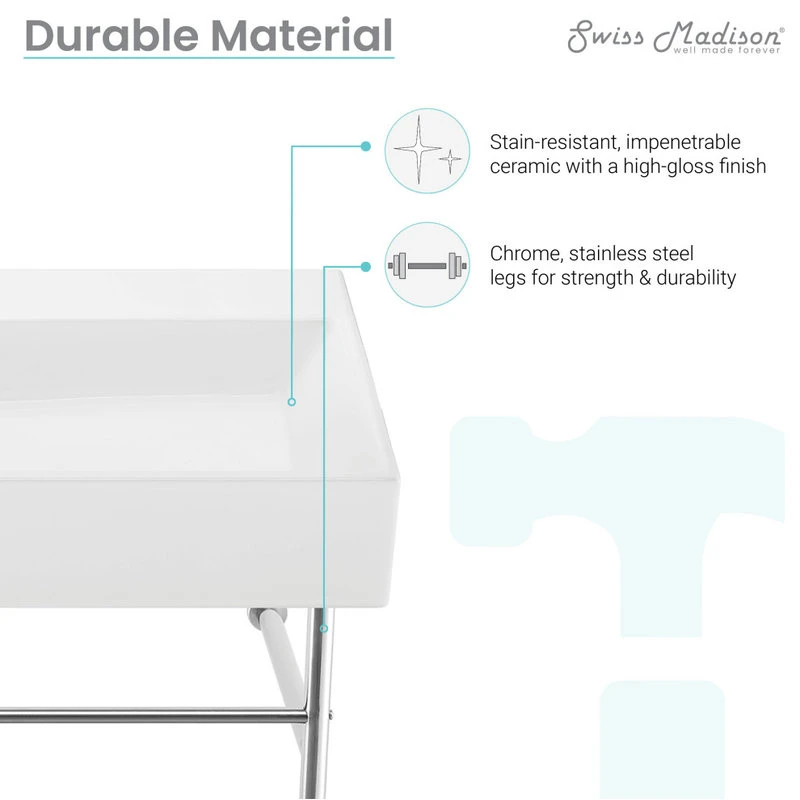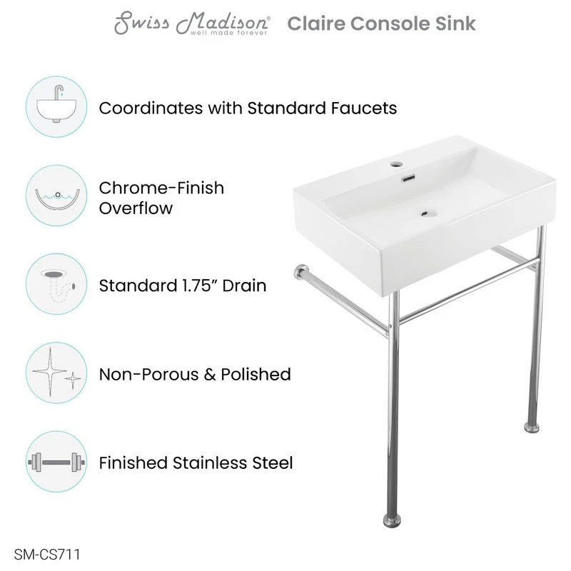 The Claire console sink ushers in your guests with a powerful and bright character. The widened washbasin offers increased ease of access. An open design makes the room appear more spacious and candid.