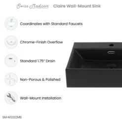 The Claire Wall-Mounted Sink has a sleek and classic design creating a more open and spacious feel for your bathroom. The sink’s seamless ceramic construction protects the surface for a clean sink that maintains its shine under repeated use. Coordinate your sink perfectly with any of our standard faucets and overflow pop-up drains.