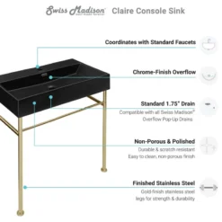 The Claire console sink ushers in your guests with a powerful and bright character. The widened washbasin offers increased ease of access. An open design makes the room appear more spacious and candid.