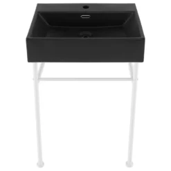 The Claire console sink was designed to use minimal floor space and to make bathrooms appear more spacious. Its elongated, rectangular basin features an overflow and is ready to be paired with your favorite faucet and drain. This sink’s frame comes in a variety of finishes and includes a front bar that is perfect for hanging towels. Claire’s minimalist design will complement any bathroom.