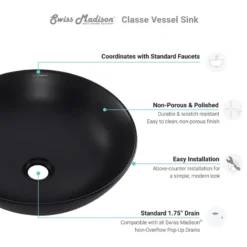 Be the first to review “Swiss Madison Classe 16″ Color Ceramic Sink In Matte Black” Cancel reply