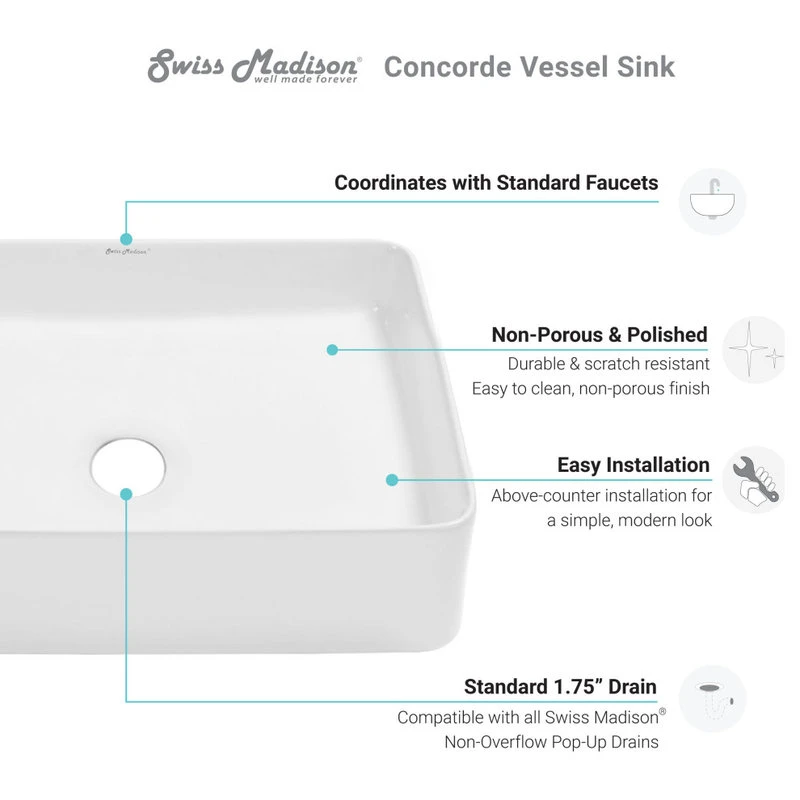 Sleek and contemporary, the Concorde vessel sink features a fresh look for classic white ceramic, in true minimalist fashion. Striking simple style, while maximizing precious bathroom space, makes above-counter sinks popular for powder rooms. Features smooth baked-on glaze, and non-porous high-gloss finish, for durable scratch-resistant and easy to clean convenience.