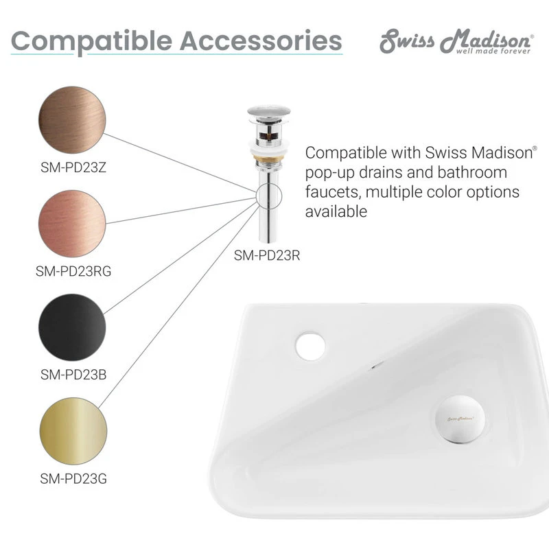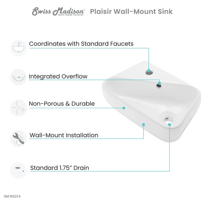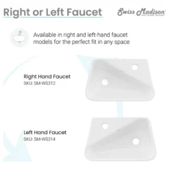 Swiss Madison’s Ceramic Wall hung sink has an elegant design that can accompany any setting. It’s convenient and compact shape fits even the smallest of areas. Constructed of Vitreous China the wall sink is a durable and long-lasting selection.