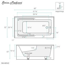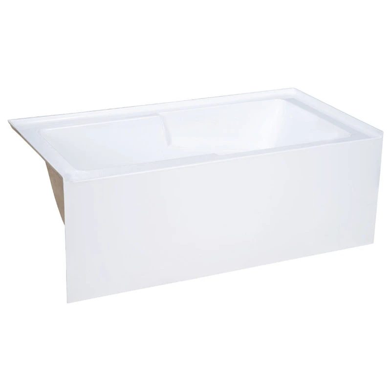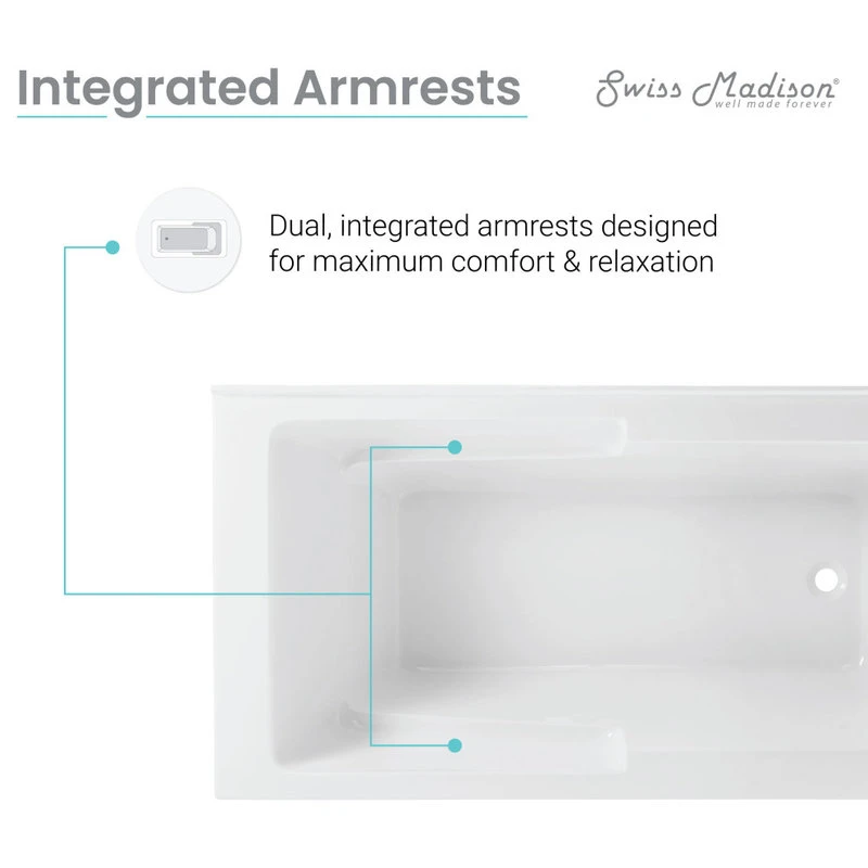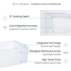 Compact and versatile the extra small Voltaire Apron Bathtub provides modern look to any bathroom. Built-in armrests support comfort and relaxation during every soothing bath. Constructed of highly durable acrylic and reinforced with fiberglass creates a robust bathtub. Fitted with a integral tile flange for convenient installation. Pairs with other items from Swiss Madison’s Voltaire collection.
