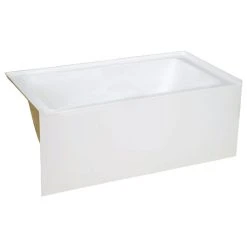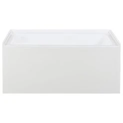 Compact and versatile the extra small Voltaire Apron Bathtub provides modern look to any bathroom. Built-in armrests support comfort and relaxation during every soothing bath. Constructed of highly durable acrylic and reinforced with fiberglass creates a robust bathtub. Fitted with a integral tile flange for convenient installation. Pairs with other items from Swiss Madison’s Voltaire collection.